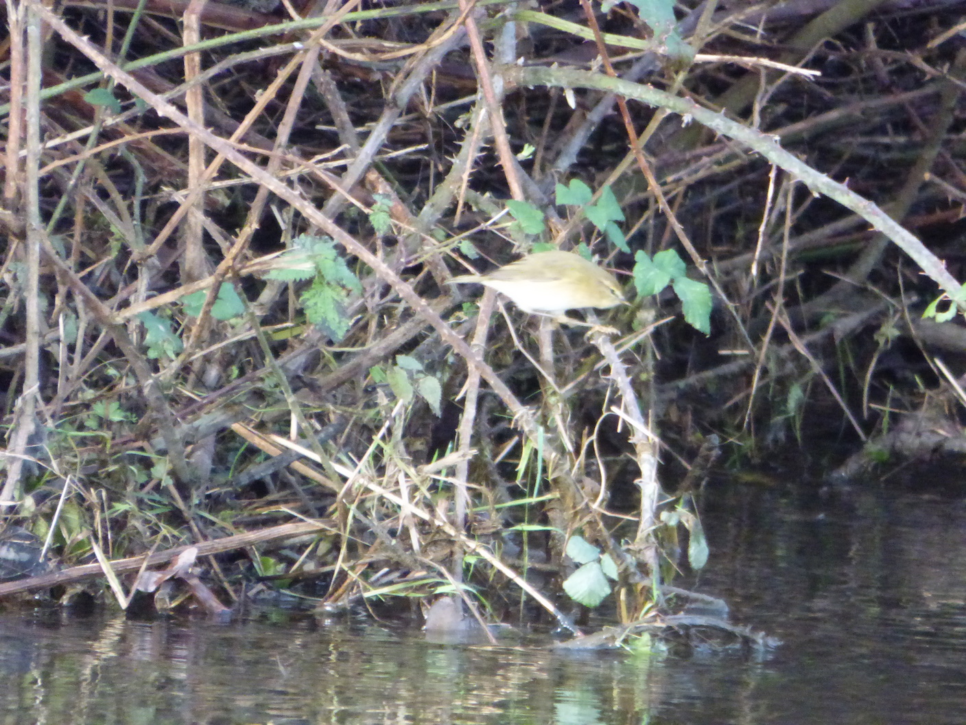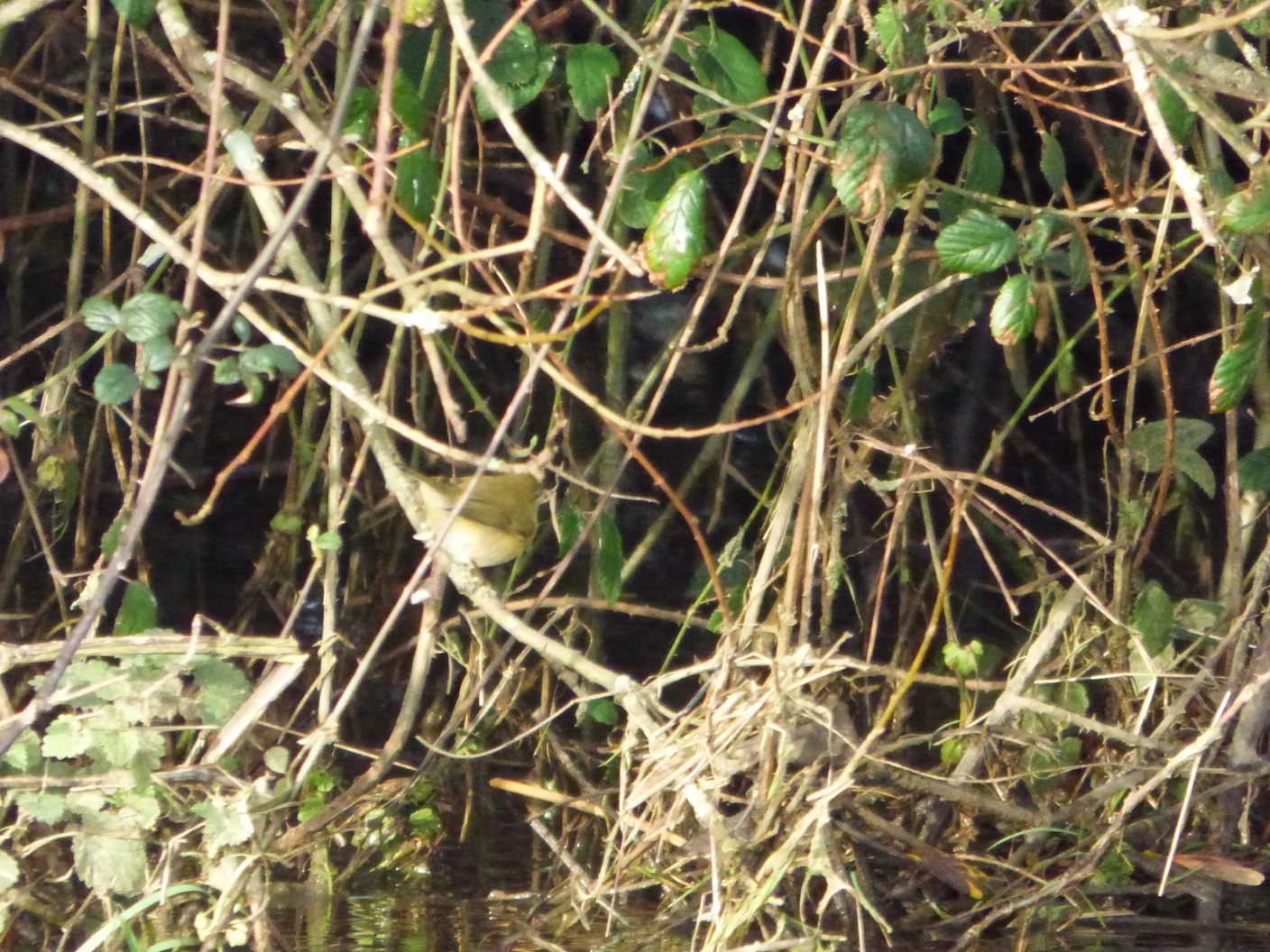 Les quelques centaines de mètres de haies et ripisylve qui ferment la parcelle de 2 ha en réserve sont prisées du pouillot véloce en hivernage. Ainsi, le 11 décembre dernier, 8 sont comptés lors du relevé. En période de "hautes eaux" comme actuellement, le comportement de chasse des véloces est typique : ils délaissent les branches où ils chassent habituellement pour se concentrer sur les très bas perchoirs, parfois au ras de l'eau.