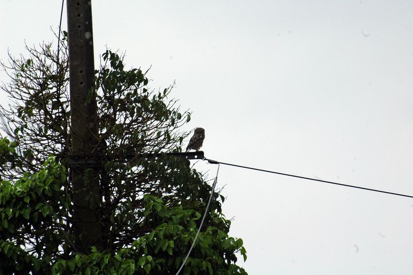 Nous avons aussi vu au même moment une chouette chevêche perchée sur un poteau téléphonique. Elle avait réagi à la repasse. Une femelle a été entendue ensuite. Nous avons été très surpris parce que la chouette hulotte est très présente sur la carte et nous n'avions eu aucun contact avec la chevêche depuis le début de l'enquête. La proximité relative des marais du PNR du Cotentin et du Bessin où l'espèce est bien présente permet de penser qu'il n'y a rien d'exceptionnel à cette observation mais bon, c'est avec beaucoup de plaisir que nous l'avons observée ici.