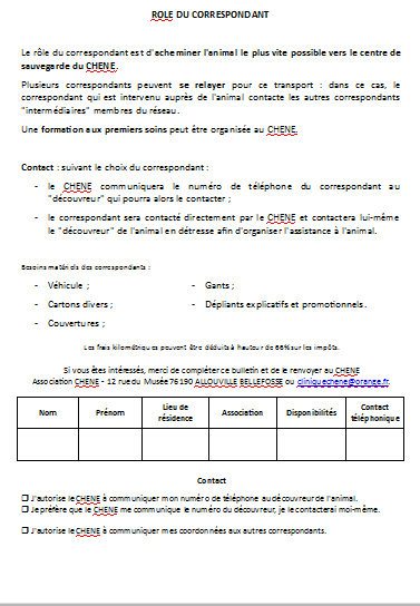 L'association Le Chêne gère un centre de sauvegarde des animaux en détresse situé en Seine-Maritime. Pour être efficace, il a besoin d'établir un réseau de correspondants locaux qui pourraient se charger d'organiser l' acheminement des animaux en détresse vers la clinique du centre.