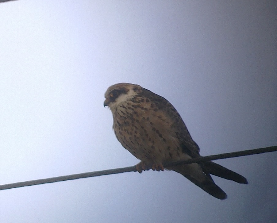 la haute vallée de la Touques ne donnant rien, c'est en rentrant chez moi qu'un oiseau posé sur une ligne électrique m'interpelle, dans la vallée de la Viette. L'oiseau est resté stoïque, il a chassé une seule fois au sol et s'est reposé sur son câble me permettant de faire des photos avec mon téléphone en digiscopie.