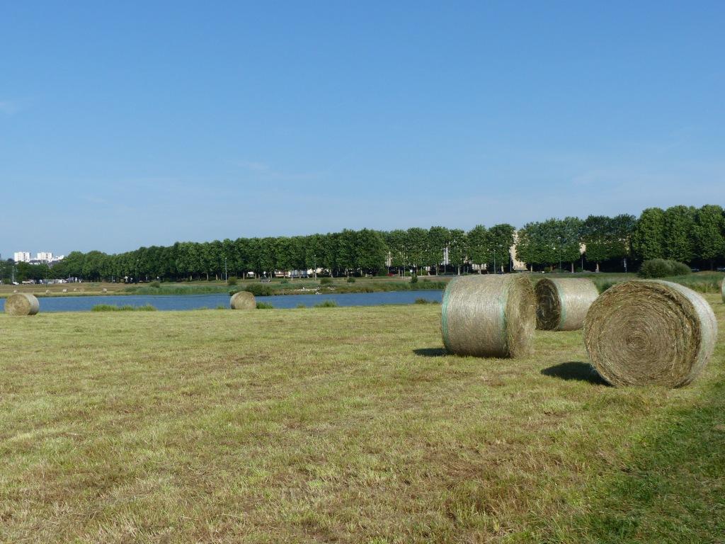 En dehors des prairies du GONm et des contrats en MAE peu de sites sont fauchés après le 15 juillet. La Prairie de Caen, sans être une réserve ni en contrat particulier, bénéficie de cette fauche tardive. Paysage étonnant en centre ville de voir ces roundballers. C'est l'occasion aussi de faire une première... nidification certaine de la perdrix grise avec au moins un poussin de moins d'une semaine !