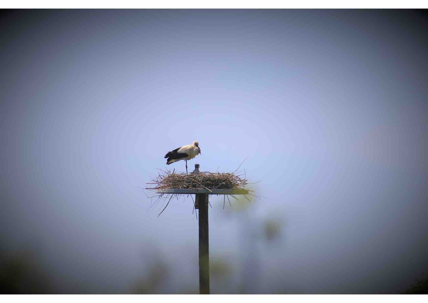 Balade à Heurteauville : la cigogne BRRZ nourrit ses 2 jeunes, des vanneaux défendent leur territoire, une sterne pierregarin pêche, héron gardeboeufs et aigrette garzette arpentent une prairie, le martin pêcheur file au-dessus d’un canal, la rousserolle verderolle chante et le traquet pâtre alarme.