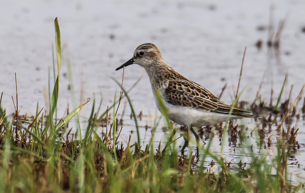 Nous nous sommes interrogés à plusieurs pour identifier ce bécasseau. C'est en fait un bécasseau minute juvénile. Ce sont les bretelles sur le dos de l'oiseau qui en premier lieu, ont permis de le distinguer du semipalmé (qui est par ailleurs occasionnel en France). Un collègue vous en dira un peu plus sur d'autres détails de plumage ce soir.